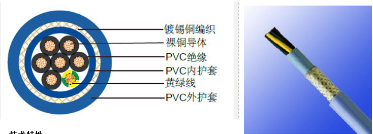 適用于干燥,潮濕的環(huán)境中,但不能在露天使用。在控制,測量和信號技術中,它們被用作屏蔽終端和連接線。銅絲編織屏蔽外界的干擾,如電磁場和雜散頻率。在工業(yè)廠房,機械和工作流程控制和檢查系統(tǒng)中用作信號和脈沖電纜。