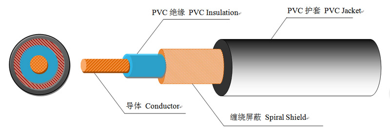 半硬質PVC絕緣 鍍錫或裸軟銅線纏繞屏蔽PVC護套